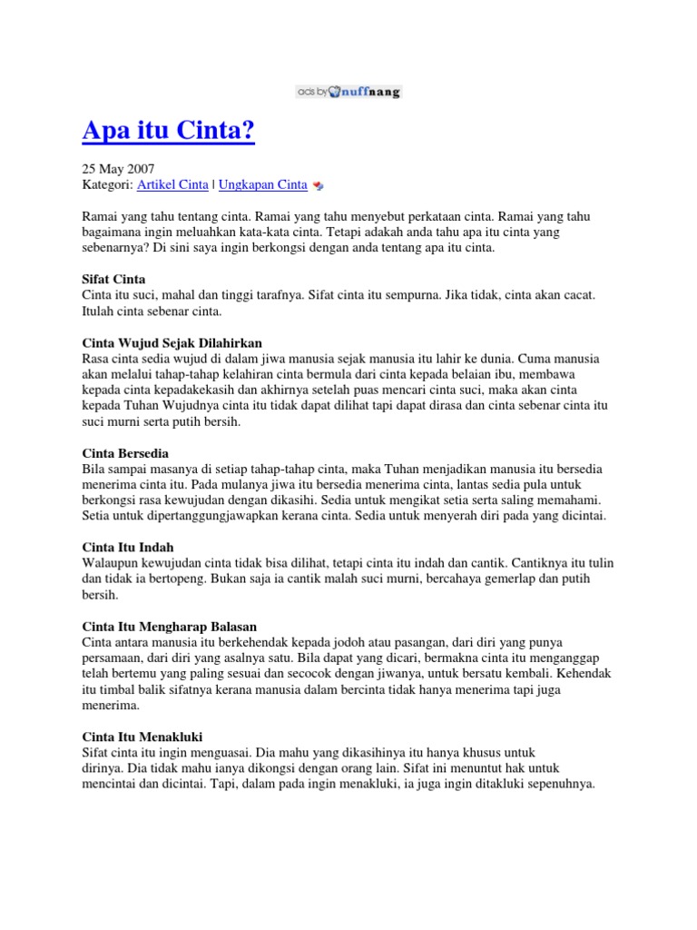 From the story definisi cinta by indahrizki_ (indah rizki) with 2037 reads. Ada pepatah populer yang bilang, cinta kadang tak ada logika. Seorang pakar psikologi zick rubin menjelaskan bahwa cinta merupakan sebuah emosi yang terbentuk dari tiga perasaan yaitu perhatian, kasih . Lagu apakah itu cinta dirilis pertama kali pada 20 juli 2020. Cinta adalah suatu perasaan setiap insan manusia terhadap sepasang manusia untuk saling menyanyangi, mengasihi, saling memenuhi, dan saling pengertian.